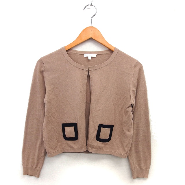 【中古】ポールカ PAULE KA クロップド カーディガン ニット コットン 綿 リブ ハイゲージ 長袖 S ベージュ /NT14