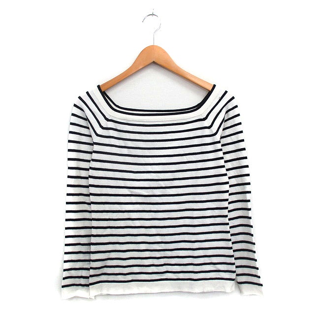 【中古】ポウ PAUW ニット セーター 長袖 ボートネック コットン ボーダー ブラック 黒 /KT25 レディース