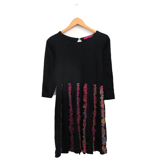 【中古】ドーリーガールバイアナスイ ワンピース ミニ 長袖 コットン 刺繍 2 ブラック 黒 /KT21 レディース