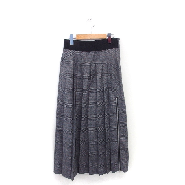 【中古】コエル COEL プリーツ スカート ロング 千鳥格子 サイドジップ 38 グレー /TT3 レディース