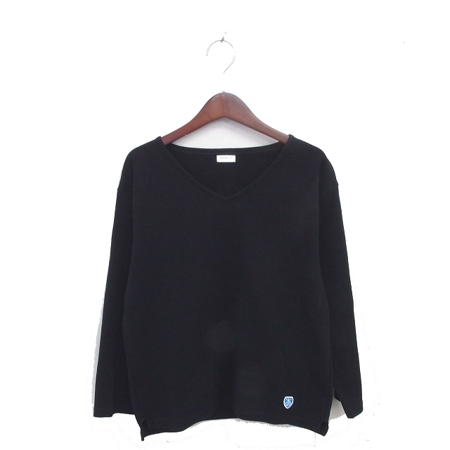 【中古】オーチバル ORCIVAL オーシバル Tシャツ カットソー Vネック ロゴワッペン 綿 コットン 長袖 0 黒 ブラック