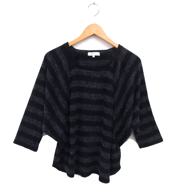 【中古】クミキョク 組曲 KUMIKYOKU ドルマンスリーブ ボーダー パイル カットソー ボートネック ラウンドヘム 七分袖