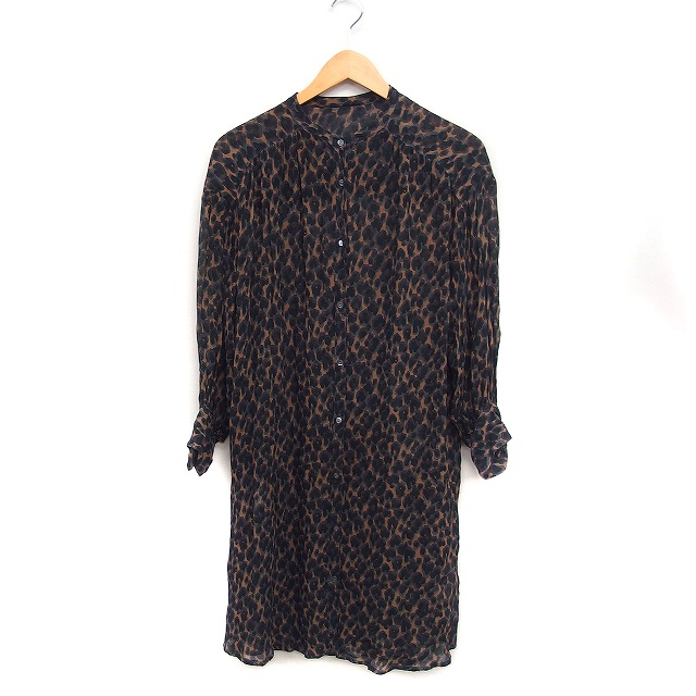 【中古】スローブ イエナ SLOBE IENA シアー レオパード柄 シャツ ワンピース 長袖 ロング丈 ブラウン 茶 /FT38