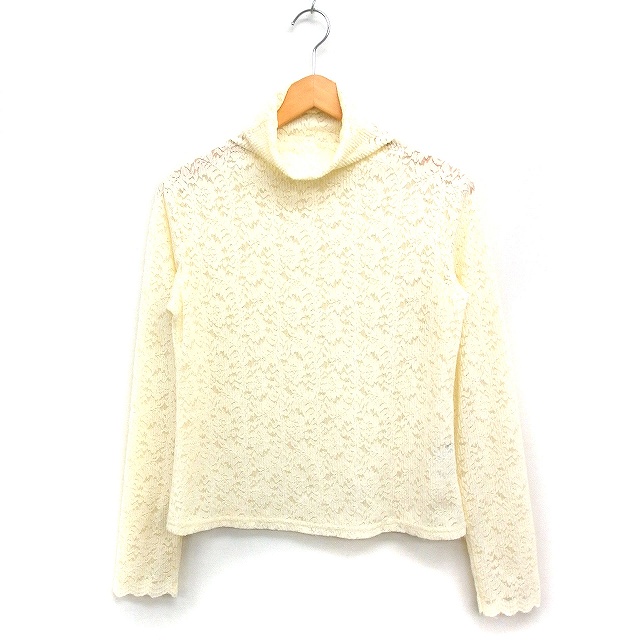 【中古】カワイイ CAWAII レース カットソー 長袖 ハイネック アイボリー 白 /FT16 レディース