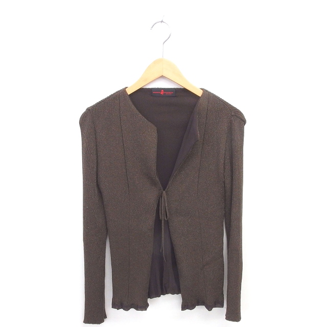 【中古】ヒロココシノ HIROKO KOSHINO カーディガン ニット 前結び ラメ 長袖 9 カーキ /TT1 レディース