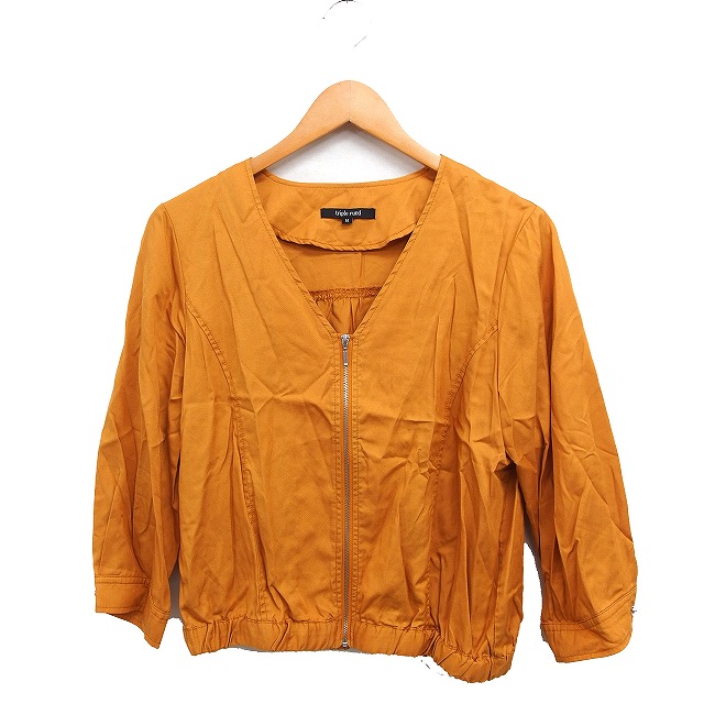 【中古】トリプルルンド triple rund ノーカラージャケット ブルゾン 無地 アウター M オレンジ /FT35 レディース