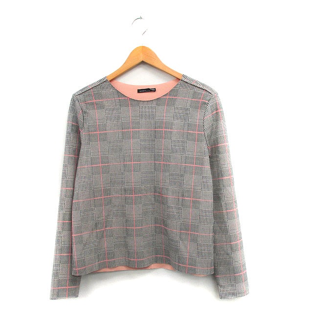 【中古】ザラ ZARA カットソー Tシャツ 長袖 チェック M グレー 灰 /KT38 レディース