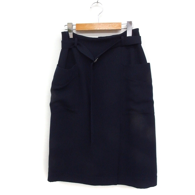 【中古】アナイ ANAYI タイトスカート ひざ下丈 ミディ丈 スリット ベルト 無地 38 ネイビー 紺 /FT38 レディース