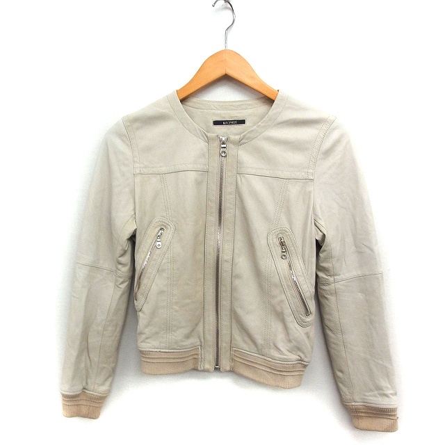 【中古】マカフィー MACPHEE トゥモローランド レザージャケット ノーカラージャケット 無地 羊革 38 グレージュ /FT
