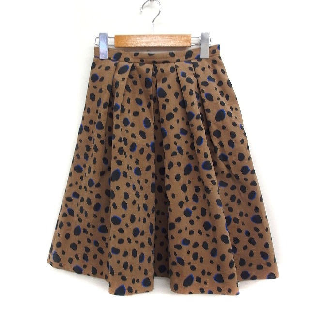 【中古】アプワイザーリッシェ Apuweiser-riche ヒョウ柄 タック フレアスカート ひざ丈 0 ブラウン 茶 /FT レディース