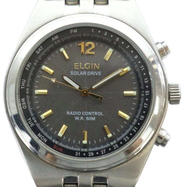【中古】エルジン ELGIN ジャンク品 腕時計 ウォッチ 電波ソーラー ロゴ シルバー色 FK-1335S-BPM