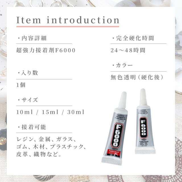 超強力接着剤 F-6000【10ml 1個】アクセサリーパーツ パーツ クリア アクセサリー用接着剤 デコ ストーン 貼付 接着 手芸用 問屋 カボション ピアス イヤリング 接着剤 ノズル付 ハンドメイド資材 材料 道具 手芸 クラフト さや工房 手作り アクセサリーパーツ 卸 おすすめ