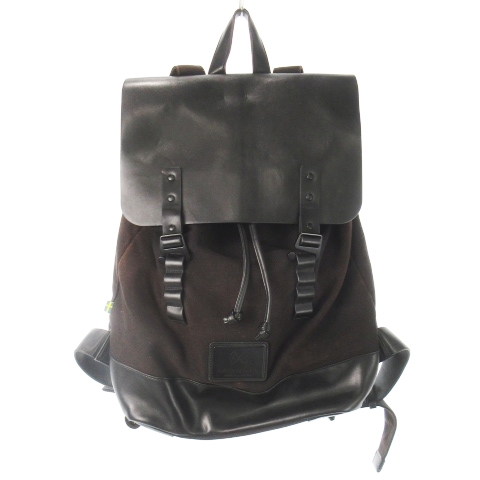 【中古】ガストンルーガ GASTON LUGA リュックサック デイパック キャンバス レザー 合成皮革 ロゴ 茶 ブラウン
