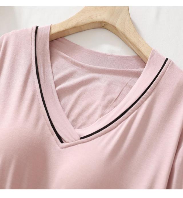 2点セット カップ付き ルームウエア ボーダー 上下セット 長袖 Tシャツ ロングパンツ レディース パジャマ 春 夏 秋 冬 着心地いい