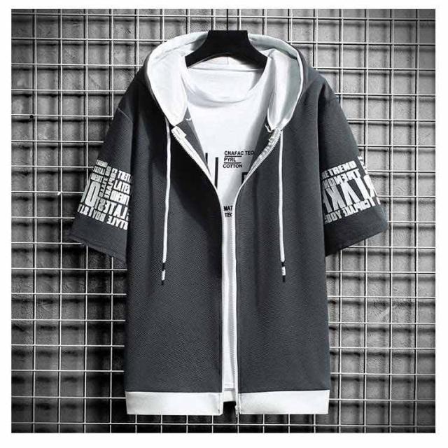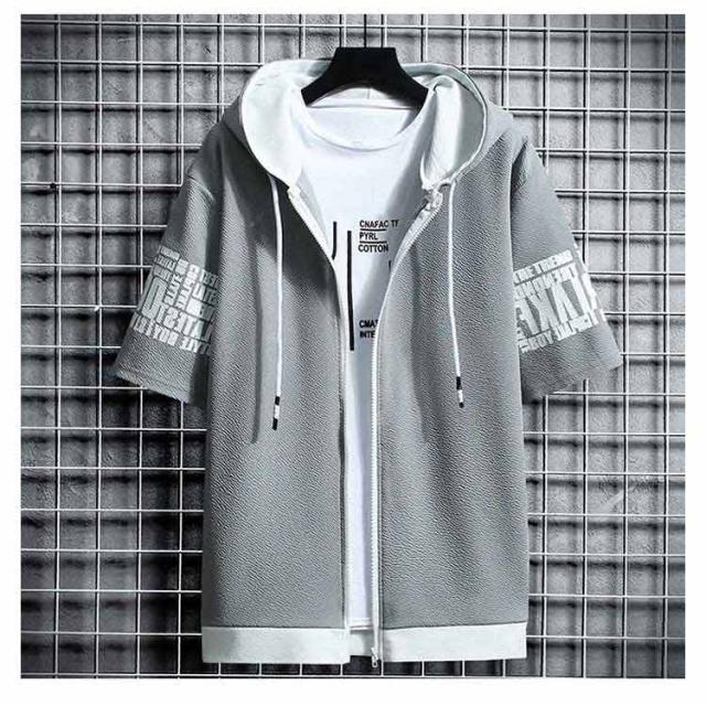 半袖パーカー カジュアル フード付き 半袖パーカー 冷感 文字 フード付き ジップアップ パーカー 薄手 パーカ 夏物 切り替え 肌触り 重ね着 メンズ 春 前開き 夏 プリント 秋 運動着 部屋着 ルームウェア