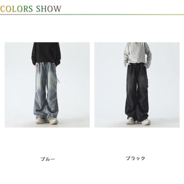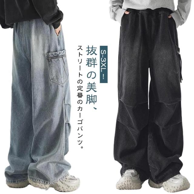 デニム ボトムス 男女兼用 レディース デニム 大きいサイズ ジーンズ ゆったり ワイドパンツ メンズ カーゴパンツ ウエストゴム バギーパンツ ジーパン デニムパンツ ストレート おしゃれ デニム ダンス衣装 ヒップホップ ストリート系 B系 カジュアル 春 夏 秋