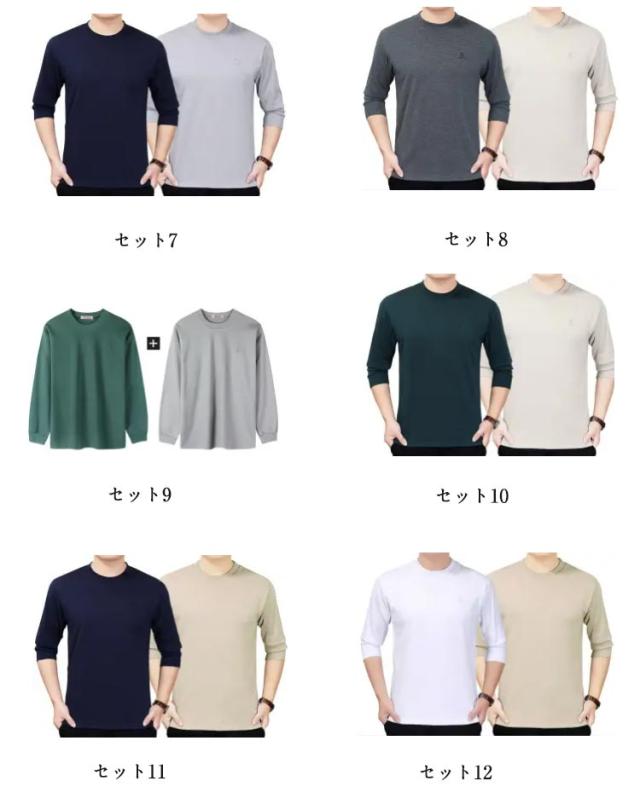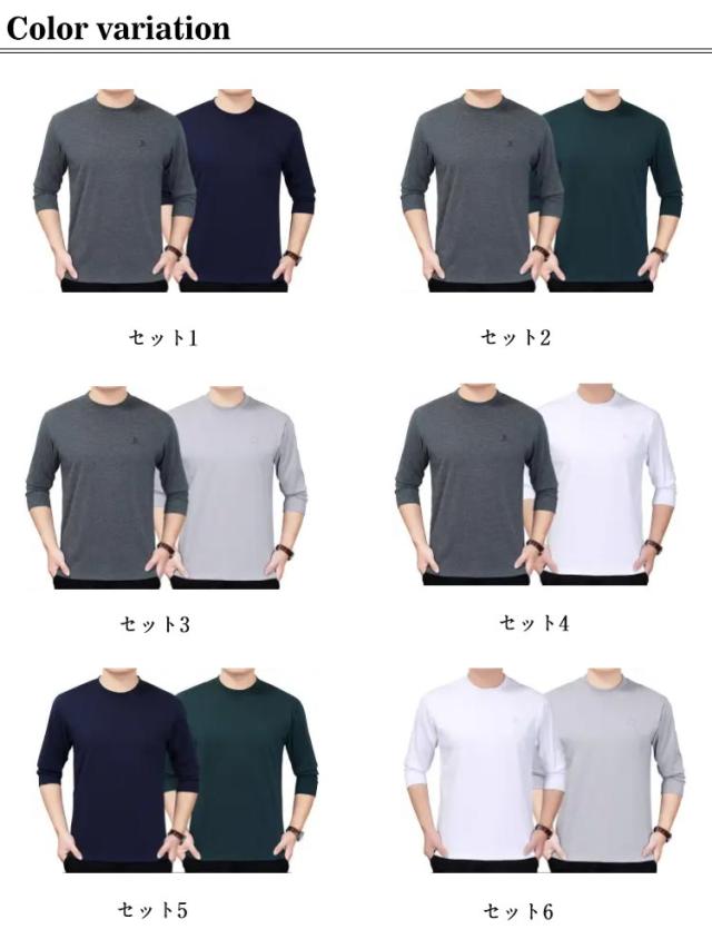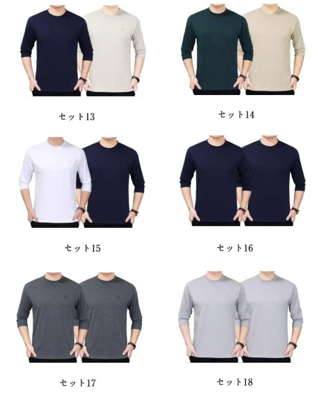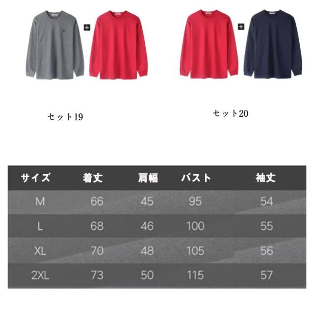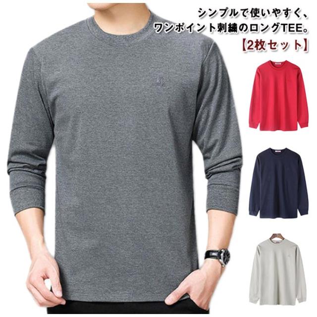 長袖 厚手 2点セット 男性 クルーネック 袖リブ 春 tシャツ ロンt ロングtシャツ メンズ 長袖tシャツ 無地 秋 冬 カットソー ロングスリーブ トップス 部屋着 ルームウェア 綿100% シンプル 綿 コットン ナチュラル