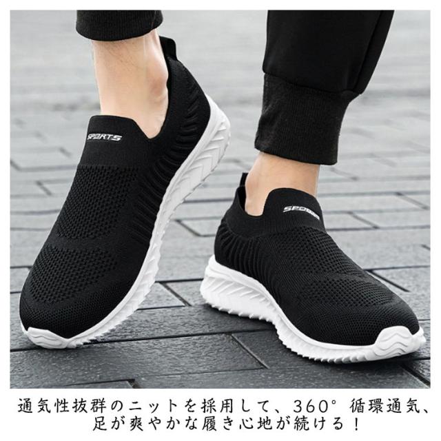 軽量、通気、快適!メンズ スリッポン スニーカー ニットスニーカー 紐なしスニーカー スポーツシューズ トレーニングシューズ 運動靴 ユニセックス 歩きやすい 疲れにくい 大きサイズ 軽量、通気、快適!メンズ 夏 秋 父の日