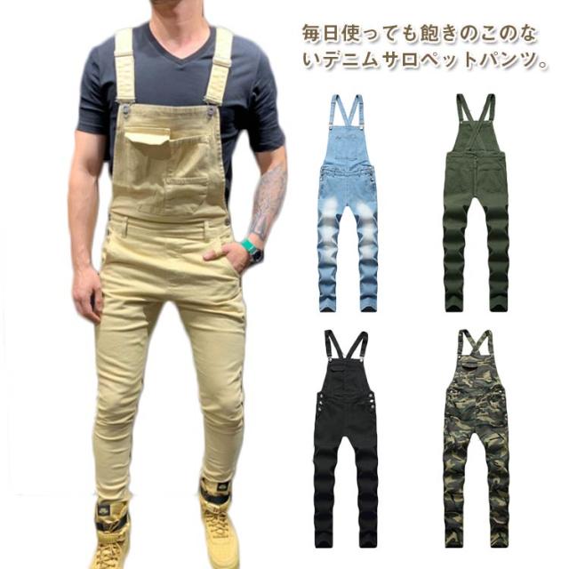 ロングパンツ デニム サスペンダージーンズ サロペット 送料無料 オーバーオール メンズ メンズジーンズ 迷彩 ストレッチ つなぎ パンツ 長ズボン デニムパンツ スキニー 作業着 カジュアル ジャンプスーツ ストリート系 春 秋 冬 スリム 美脚 ジーンズ