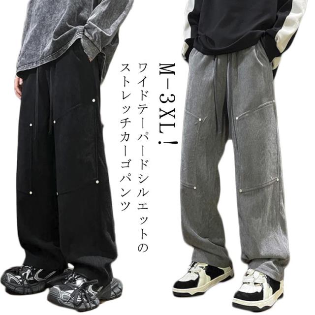 | M-3XL!ワイドテーパードシルエットのストレッチカーゴパンツ 大胆なワイドシルエットはリラックス感があり、着心地が楽ちんなのも嬉しいポイント。 ウエストバックゴム仕様なので、穿き心地も抜群です? シンプルなカットソー、パーカーなどと合わせて、トレンドカジュアルコーデの完成です | |
