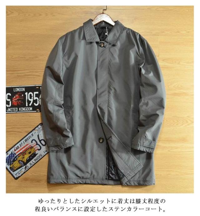 | オンオフ問わず着ていただけるなステンカラーコート。 裏にはのキルティングを仕込み、軽量でありながら保温性も確保。 比翼仕立てのシンプルなデザインと軽さと温かさを兼ね備えているのでカジュアルからビジネスシーンのアウターとして重宝します。 ゆったりとしたシルエットに着丈は膝丈程度の程良いバランスに設定したステンカラーコート。 ビジネスはもちろん、カジュアルにも組み込みやすい汎用性の高い一着です。 | |