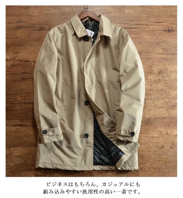 厚手 中綿 ステンカラーコート ハーフコート アウター トレンチコート 秋 ステンカラーコート ビジネス 紳士服 メンズ 冬 ゆったり 秋冬 襟付き ミドル丈 無地 防寒 保温 暖かい 軽量 ロングコート 中綿コート 通勤 カジュアル 黒 ベージュ ネイビー 紺 大きいサイズ