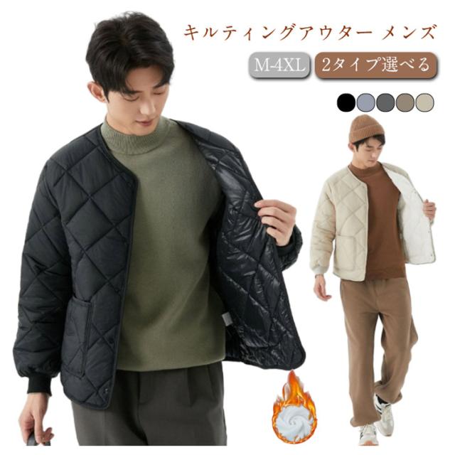 キルティングコート メンズ ジャケット 両面 大きいサイズ アウター 2タイプ選べる ポケット 羽織り 上着 長袖 撥水 秋 冬 コート 中綿 キルティング ジャケット メンズコート コート キレイめ ショートコート 秋 冬 春 通勤