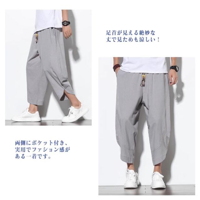 | 通気性で、着心地はもちろん見た目にも風合いのあるイメージをプラス。 両側にポケット付き、実用でファション感がある一着です。 足首が見える絶妙な丈で見ためも涼しい!太もも部分にたっぷりと余裕があり涼しい穿き心地です。 カジュアルファッションとして、ウェストの幅を自由に調整でき、動きやすい、ゆったりとした履き心地です。 ゆったりシルエットでリラックス感満点の穿き心地です。ステイホーム、ルームウェア、リラクシングウェアとしても重宝し、おうち時間など巣ごもり需要に最適。 | |