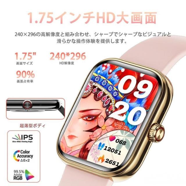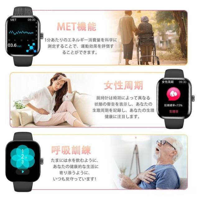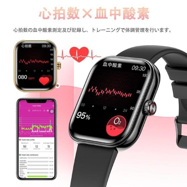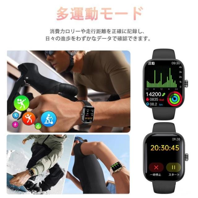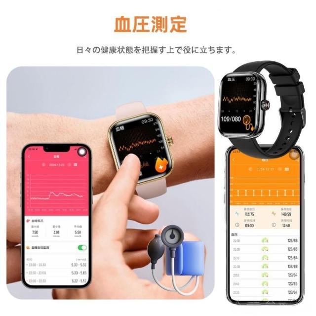 スマートウォッチ 音声アシスタント 血圧 血中酸素 高精度心拍数 睡眠管理 呼吸率 歩数計 運動記録 Line着信通知 iphone/Android