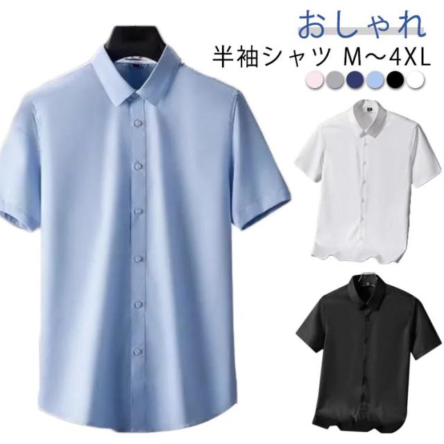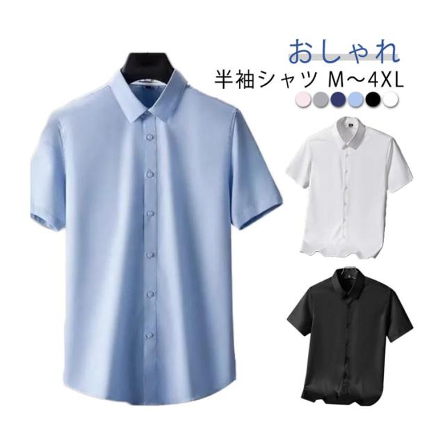 半袖シャツ シャツ ワイシャツ メンズ ゆったり 五分袖 涼しい アイスシルク ビッグシャツ 接触冷感 カジュアルシャツ ノーアイロン カジュアルシャツ tシャツ ワイシャツ 快適 半袖 ビジネス Yシャツ スリム 通勤 オシャレ 大きいサイズ 夏 春 結婚式