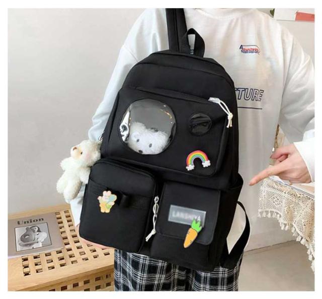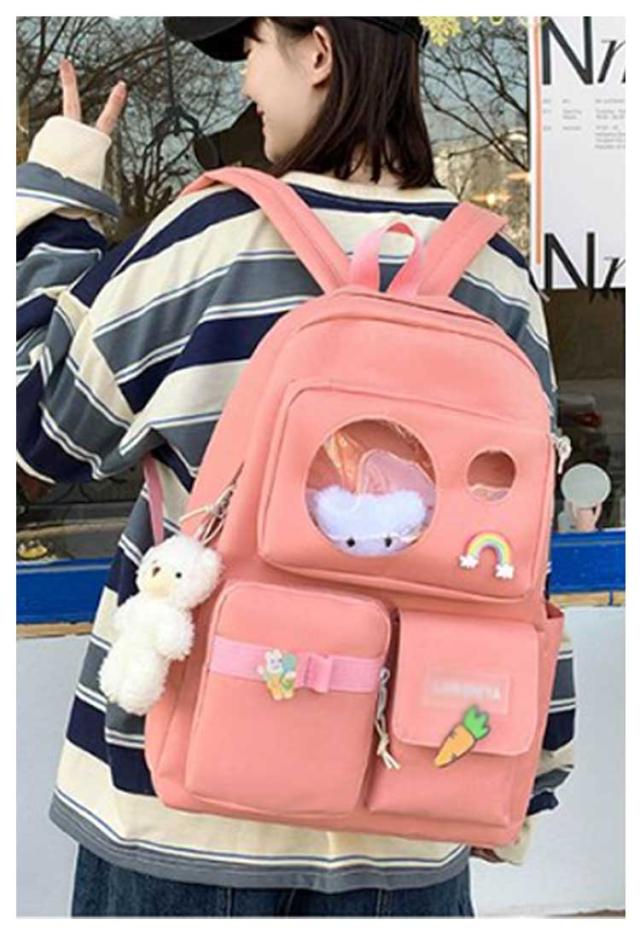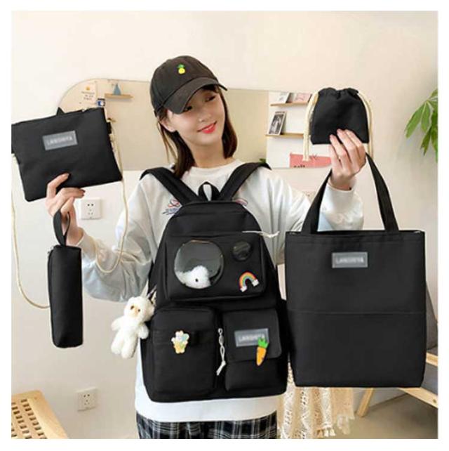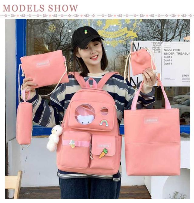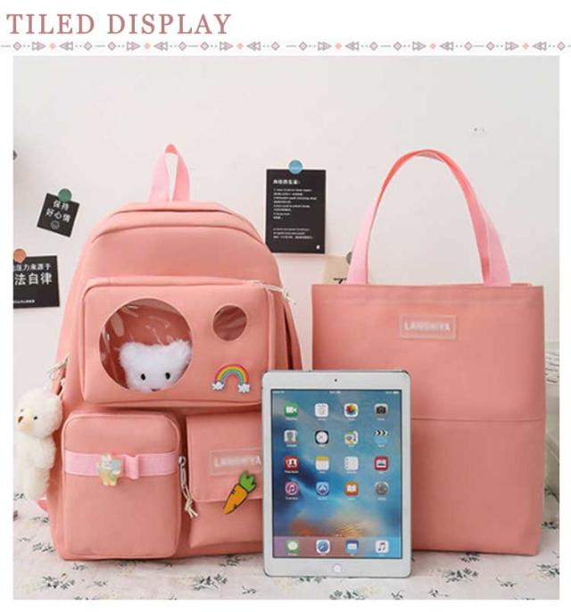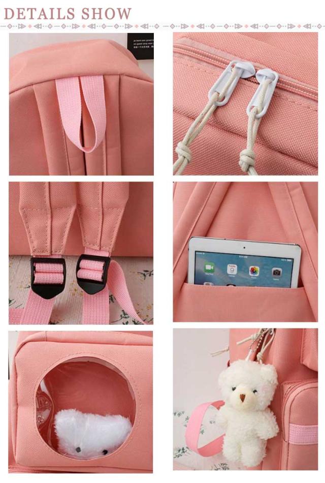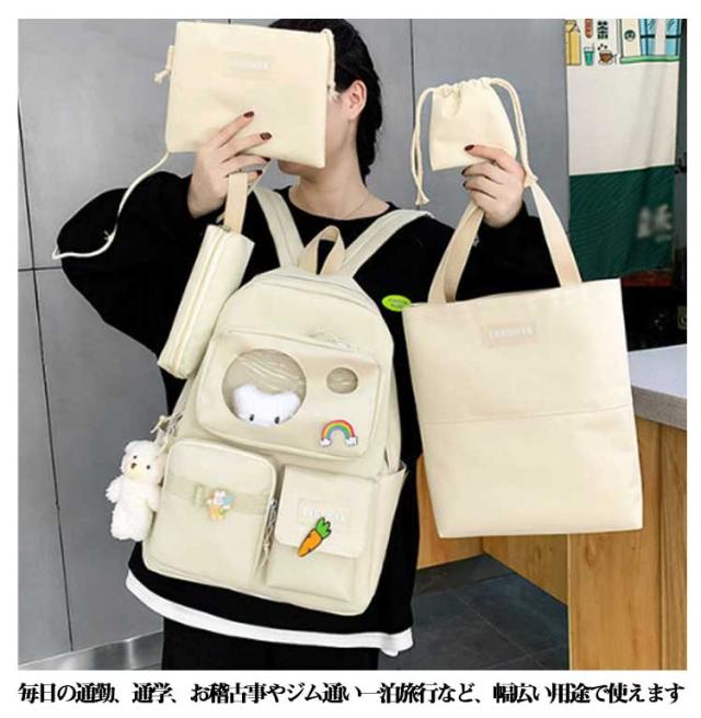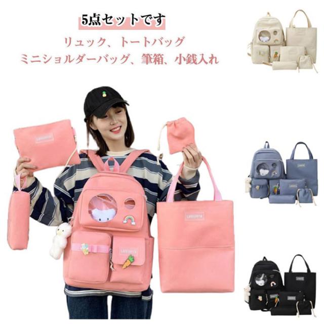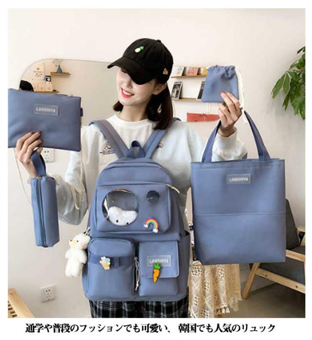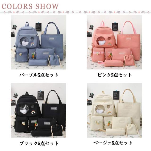 女の子 男子 可愛い リュック バックパック 中学生 高校生 女子 大学生 通学 男の子 レディースバッグ 男女兼用 バッグ カバン スクールバッグ レジャー アウトドア 飾り付き 通勤 キッズ 子供 5点セット 大容量 多収納