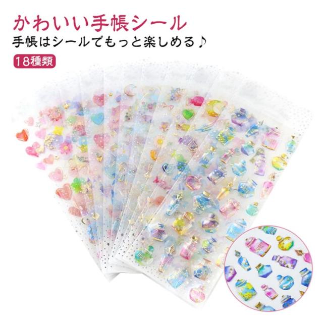 かわいい 3Dテッカー ミニ デコ キラキラ 手帳 18枚セット 手帳 手帳ステッカー 18枚セット マルシェ おしゃれ 手帳用 大容量 日記 ミニ ステッカー 大量 男の子 女の子
