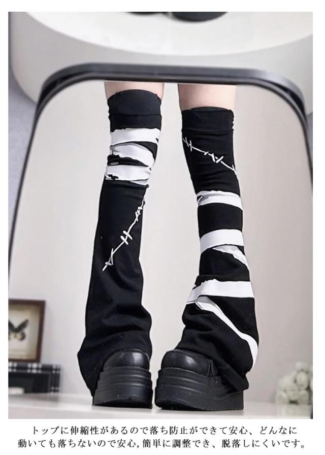 靴下 ルーズソックス 地雷系 レッグウォーマー ゴシック サブカル レッグカバー 病み可愛い 足首ウォーマー 量産型 レッグウォーマー ギャル かわいい ソックス Y2K 渋谷 原宿 タイト ロング丈 サブカル ゴシック系 可愛い JK 制服 学生