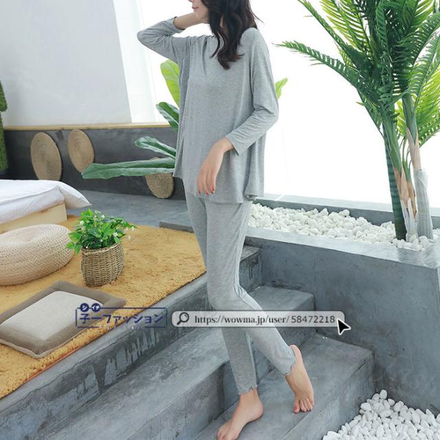 ルームウェア 長袖 上下セット セットアップ レディース パジャマ モダール 部屋着 寝間着 長ズボン 新生活 柔らかい 肌にやさしい 快適 ゆったり ゆるめ ストレスフリー 無地 休養 リラックス 大人 カジュアル 春 夏 秋 冬 秋冬 バレンタイン