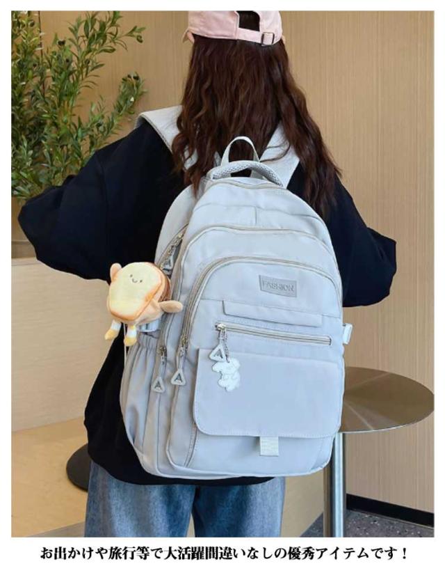 | かわいいおもちゃ付けてファッション性もっと高くなる。通勤・通学や旅行などに使える大容量の韓国式リュックサックです。 A4サイズより大きい物品でも収納できます。 雑誌や書類、タブレットはもちろん 傘、水筒など入れます。 収納力抜群、旅や日常生活よく使われる小物などの整理整頓に活躍できる素敵一品です。傘、メガネ、財布など必需品がきちんと収まります。 お出かけや旅行等で大活躍間違いなしの優秀アイテムです! 耐水・耐摩耗性のあるナイロン製で、通気性と熱放散性に優れており、肩を大事にするパッド入りのショルダーストラップが二つ付いています。 超軽量素材なので、長時間背負っても疲れが出にくいです。 シンプルなデザインがコーディネートしやすく、男子も女子も、大学生から高校生や中学生、どなたにも適用し、どんな場面でもご使用いただけます。 荷物を持ち運ぶためのアイテムだけではなく、流行りのファッションアイテムでもあります。 | |