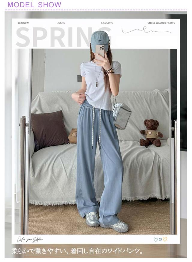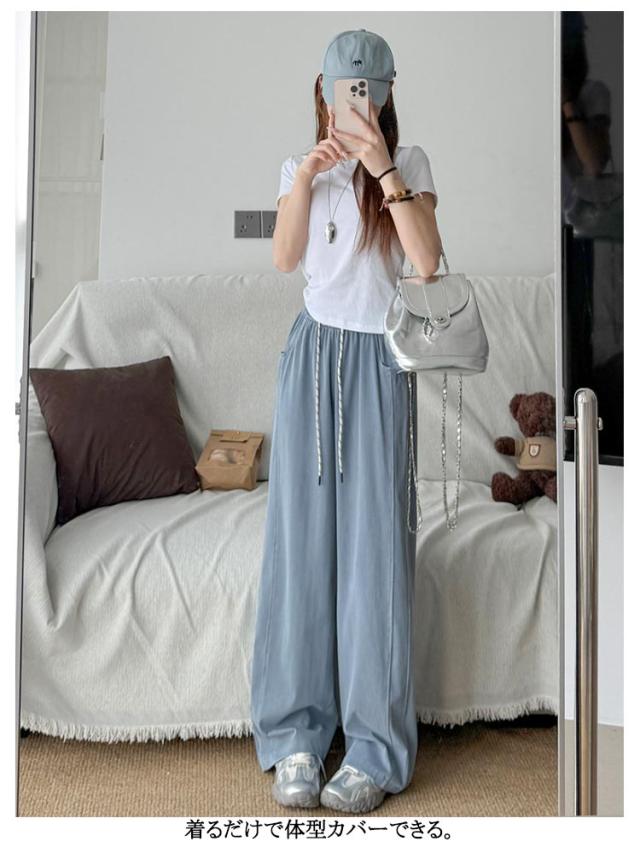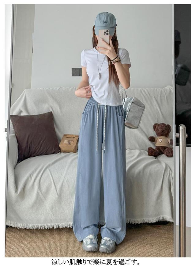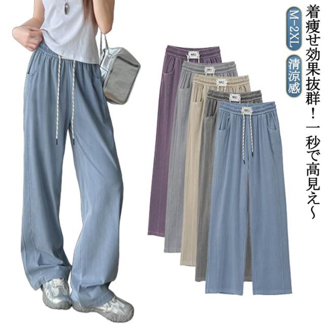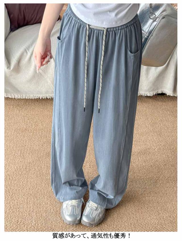ワイドパンツ 清涼感 パンツ パンツ ワイドパンツ レディース 夏 接触冷感 パンツ 涼しい ジーンズ 爽やか ボトムス 冷感素材 リラックス ウエストゴム ジーパン 薄手 長ズボン イージーパンツ ふんわり パンツ ゆったり