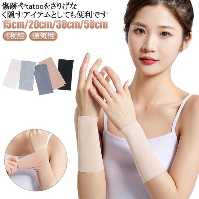| 4枚組 15cm/20cm/30cm/50cm 傷跡やtatooをさりげなく隠すアイテムとしても便利です。 柔らかく通気性の良い綿素材を使用、伸縮性が良いです。 日常使用でも重たく感じず、 冷房の効いた部屋での使用も手腕を冷やすのを防いでくれます。 薄手で上着にも影響を与えないタイプで、重ね着でも活躍します。 | |