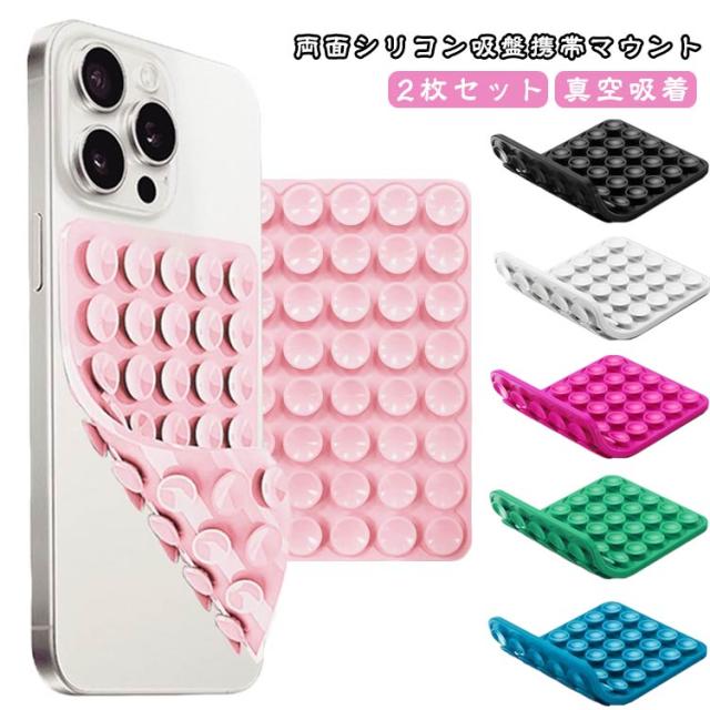 スマホホルダー Android 両面シリコン吸盤携帯マウント スマホスタンド シリコン吸盤 2枚セット iPhone16 サクションカップ 自撮り ジム 壁 キッチン 片手操作 ダッシュボード ハンズフリー 冷蔵庫 2枚セット お風呂 車内用