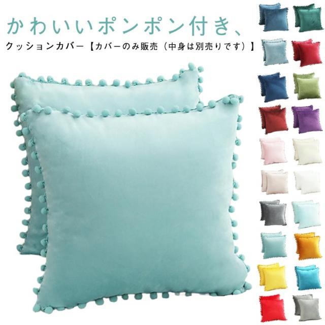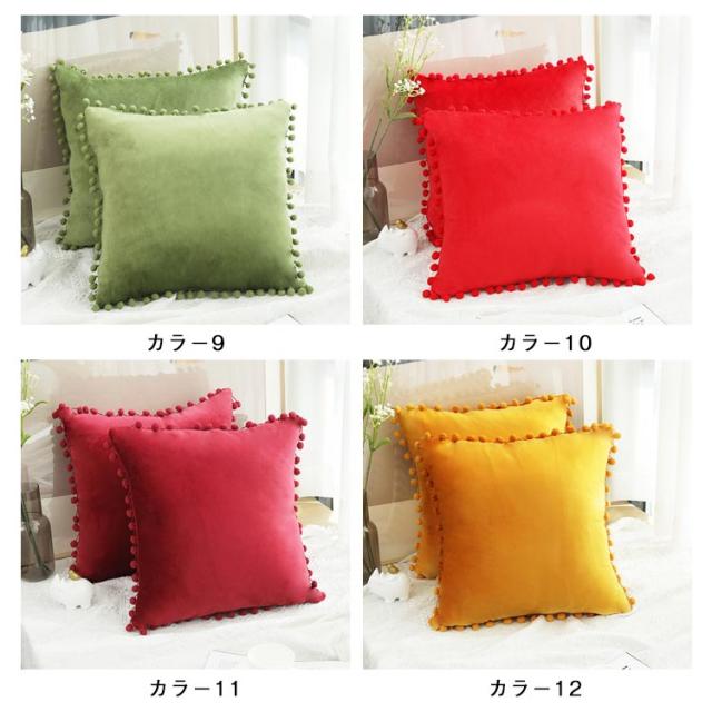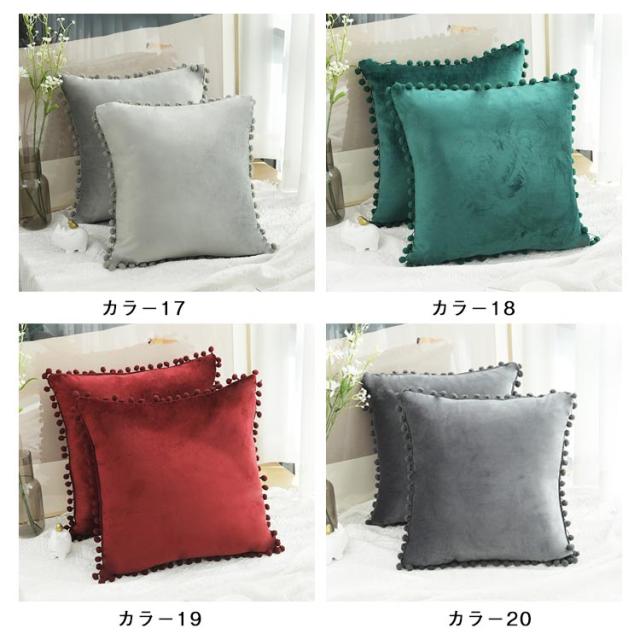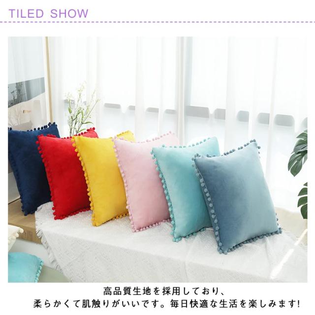 40×40cm ベロアタッチ おしゃれ ポンポン付き クッション ポンポン付き かわいい 長方形 カバー 65×65cm 50×50cm 座布団カバー 正方形 角型 30×50cm 背当て クッション カバー 洗える シンプル プレゼント ギフト 新生活 新居 引越し祝い