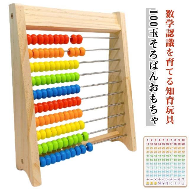 百玉そろばん 100玉そろばん 数字カード付き 百たま 算数 学習 算盤 知育玩具 家庭学習 学習塾 幼稚園 幼児 小学生 低学年 おもちゃ ソロバン 木のおもちゃ 玩具 カラフル 男の子 女の子 足し算 引き算 掛け算 教材 子供の日 教具 5歳 4歳 クリスマス プレゼント