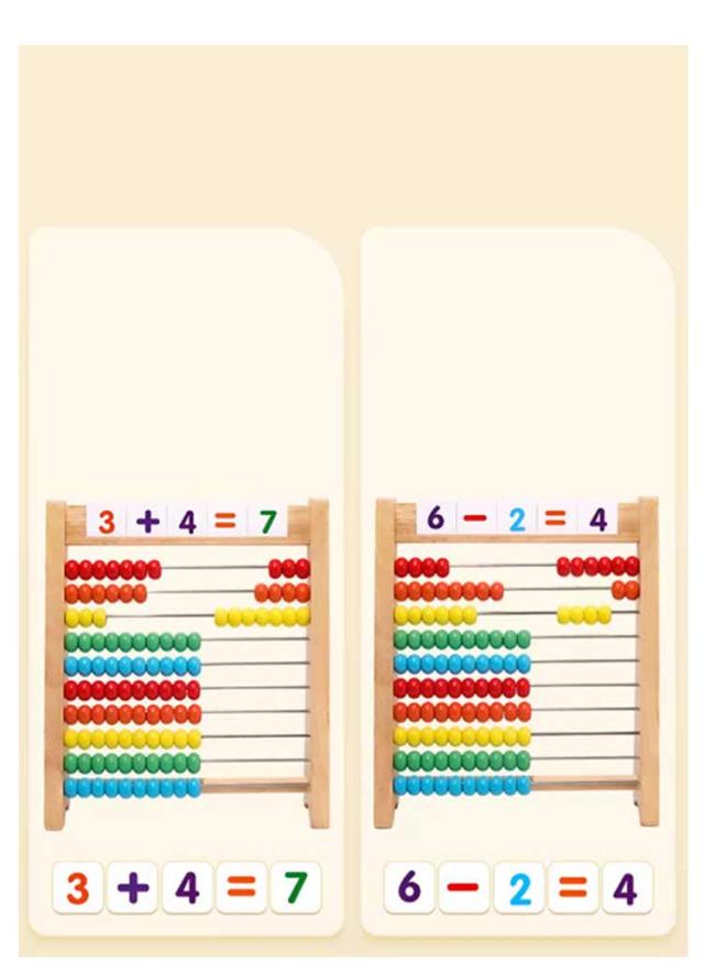 | 【数学認識を育てる知育玩具】 10段のカラフルなそろばんボード。 1つの段に10個そろばん玉がセットされています。 全部で100個のそろばん玉を使って、数の数え方を学ぼう~ +、−、などの記号を使って計算式を作ることもできます。 簡単な算数(足し算/引き算/掛け算/割り算)は、将来の数学学習の基礎を築きます。 カード:120枚数学カード 【100玉そろばんおもちゃ】 玉を動かし、数を数えてあそんでみましょう! 触って・見て、感覚的・視覚的に数字にふれあえる100玉そろばんです。 1個ずつ数える、2個ずつ数える、数あそび が楽しくなるカラフルな 100玉 そろばん! | |