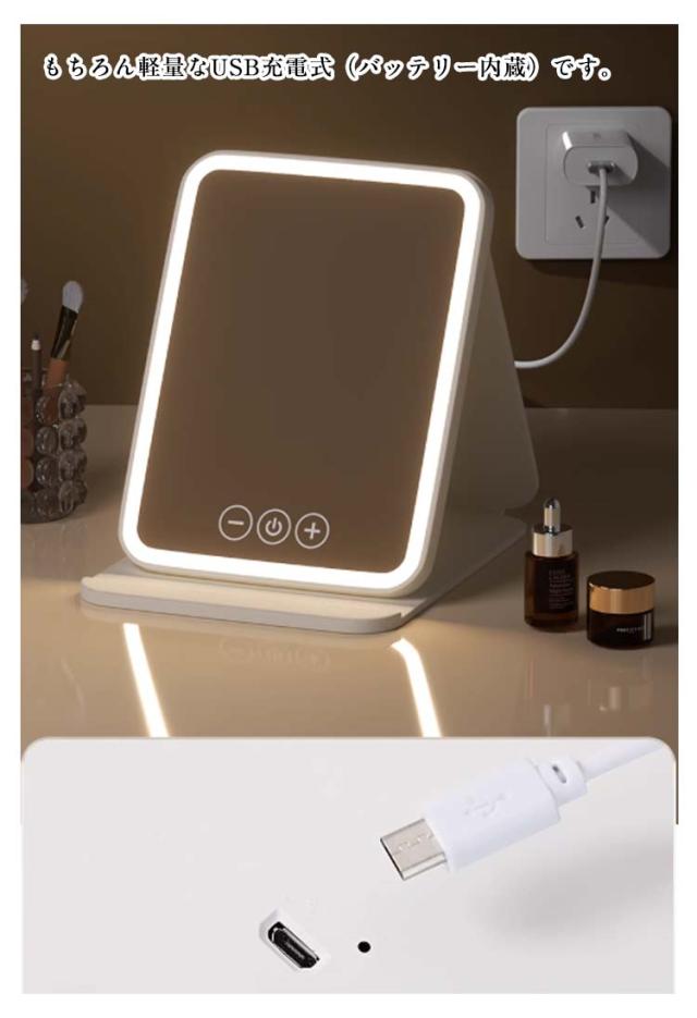 ライト付きミラー LED USB ライト付き 女優ミラー 充電式 卓上 充電 かがみ 鏡 スタンド ミラー タッチ ライト 明るさ調節 卓上鏡 化粧鏡 卓上ミラー タッチスイッチ スタンドミラー ライトミラー 化粧 メイク 女優ライト メイクミラー 新生活