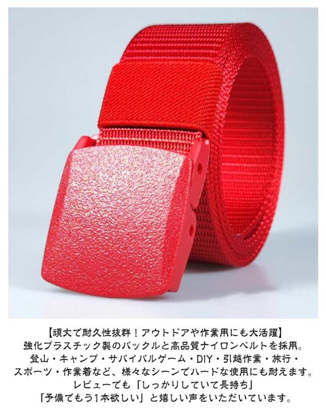 | 長さ120cm 軽くて丈夫!金属不使用ナイロンベルト 選べる20色【2枚セット】 【サイズ調整が驚くほど簡単!】 穴が無い「無段階調整タイプ」だから、微妙な長さ調整が可能!ウエストのサイズにピッタリ合わせられます。 さらにハサミで簡単にカットできるので、男性・女性問わず自分の体型に合わせて最適な長さに調整できます。 成長期のお子様から体型が気になる方まで、誰でも快適にフィット。 【非金属バックルで空港もストレスなし!金属アレルギーの方にも安心】 バックルは非金属なので、空港の保安検査でも着用したままスムーズに通過可能。 金属アレルギーが心配な方や、頻繁に飛行機を利用する方にも嬉しいポイントです。毎回ベルトを外す面倒から解放されます。 【頑丈で耐久性抜群!アウトドアや作業用にも大活躍】 強化プラスチック製のバックルと高品質ナイロンベルトを採用。 登山・キャンプ・サバイバルゲーム・DIY・引越作業・旅行・スポーツ・作業着など、様々なシーンでハードな使用にも耐えます。 レビューでも「しっかりしていて長持ち」「予備でもう1本欲しい」と嬉しい声をいただいています。 【蒸れにくく快適!通気性に優れたナイロン素材】 通気性の高いメッシュ構造なので、汗ばむ夏場や湿気の多い梅雨時期でも蒸れにくく快適。 長時間の着用でも肌あたりが良く、軽量で負担になりません。 【プレゼントにもおすすめ!幅広い世代・用途で活躍!】 普段使いはもちろん、父の日や誕生日プレゼントとしても人気。 アウトドア好きな方、作業服を着るお仕事の方、旅行好きな方にも喜ばれる実用性の高いアイテムです。 シンプルデザインなので、ビジネスシーンやカジュアルコーデにも馴染みます。 | |