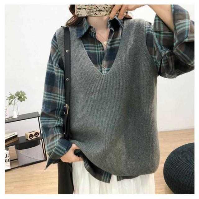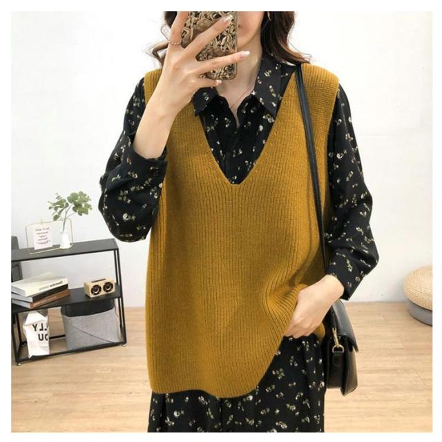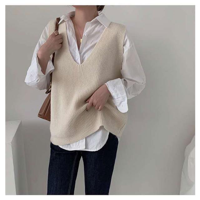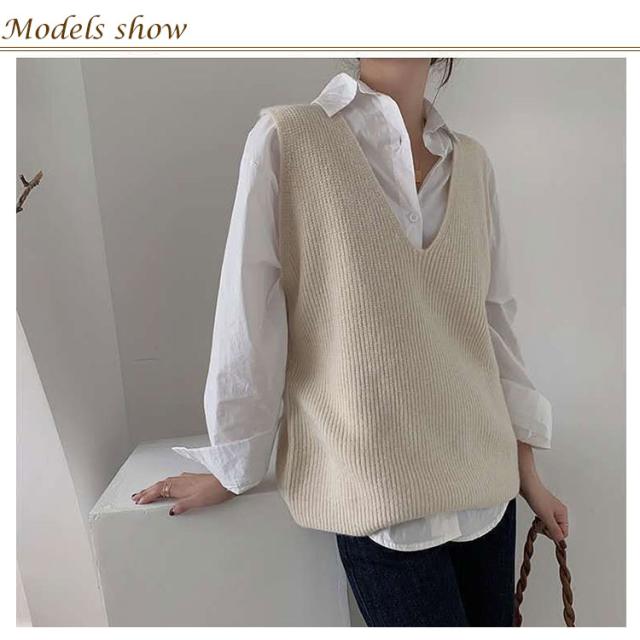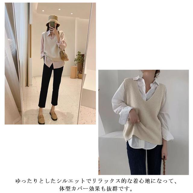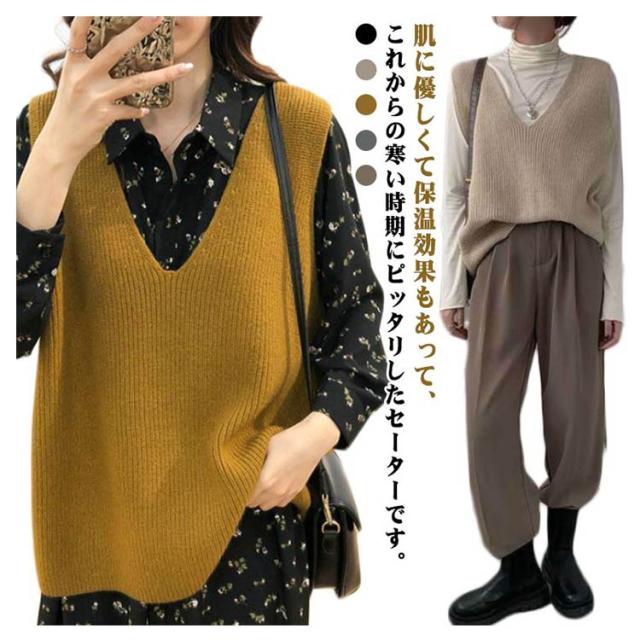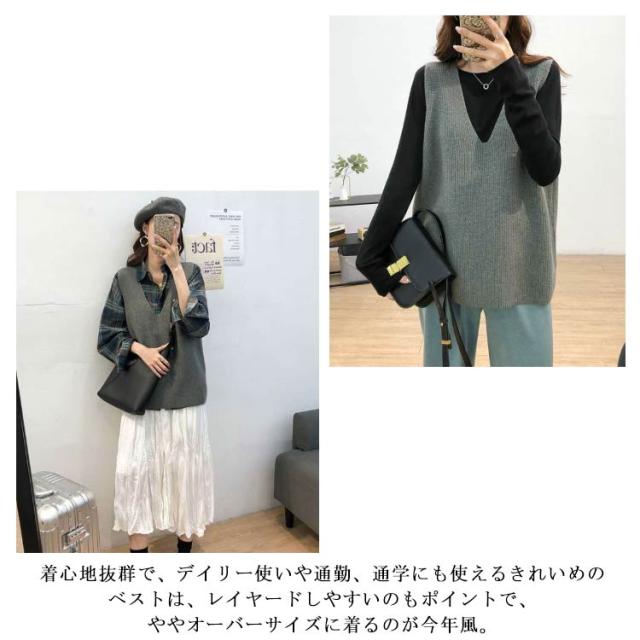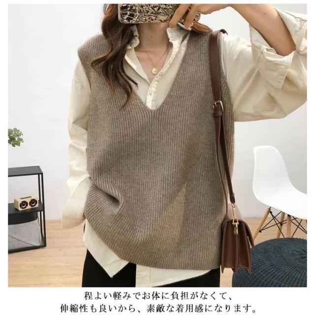 柔らかい vネック プルオーバー 大きめ トップス レディース ニット ニット セーター ベスト トップス 重ね着 レイヤード カジュアル 春 秋 冬 ゆったり シンプル 無地 通勤 ニットセーター 通学 お洒落 ニット 20代 30代