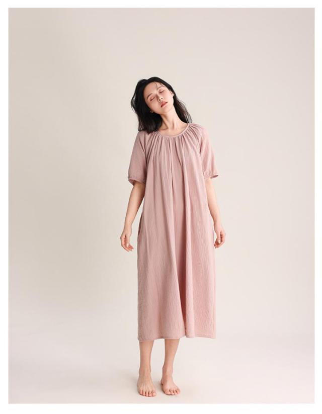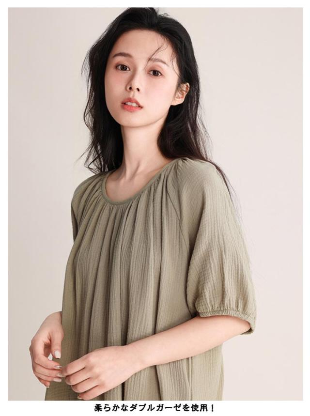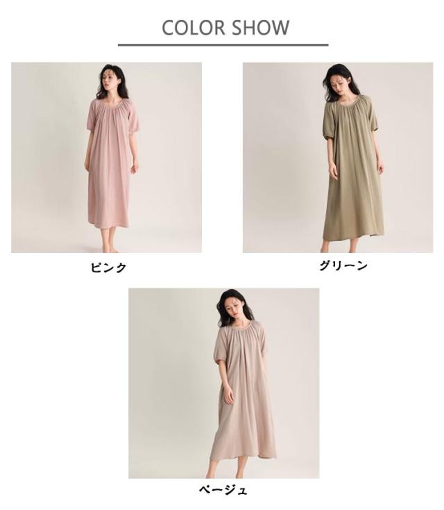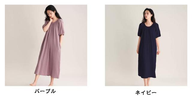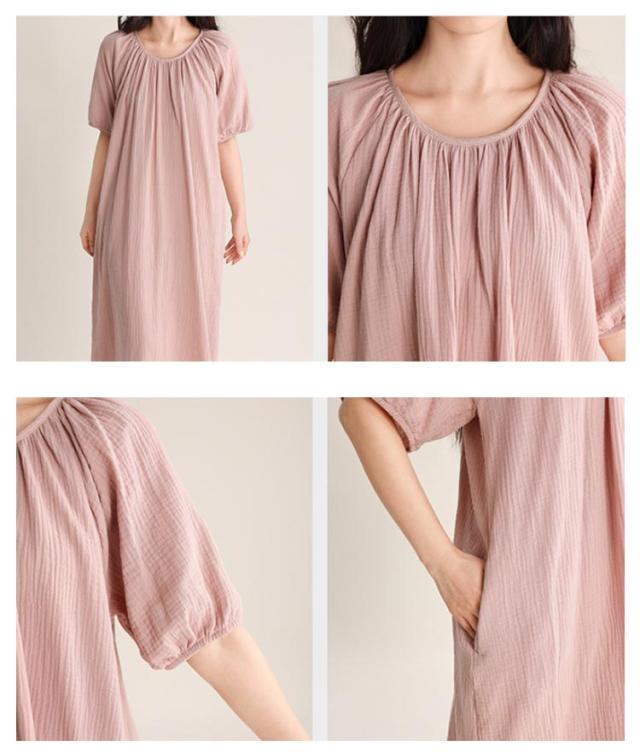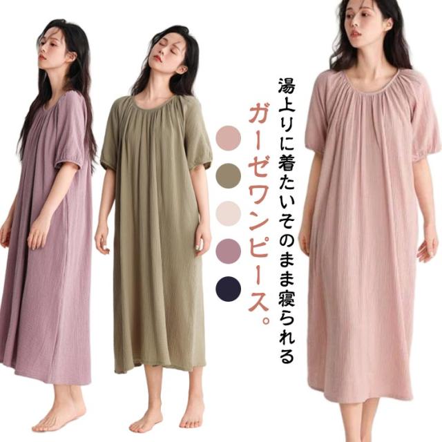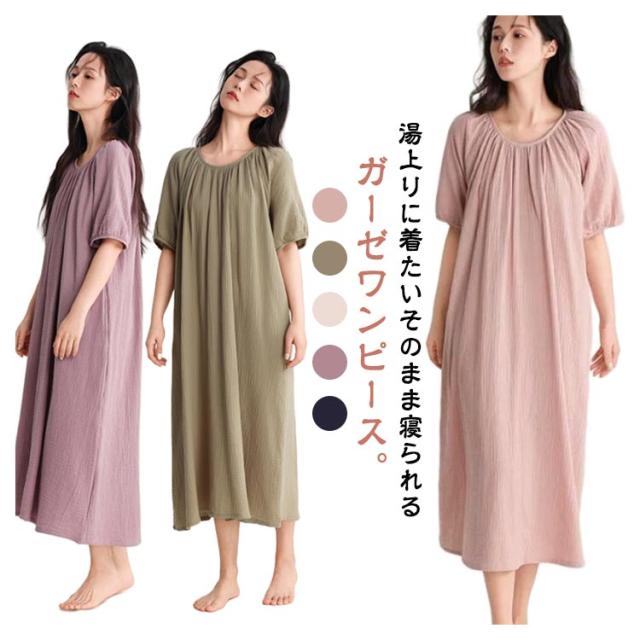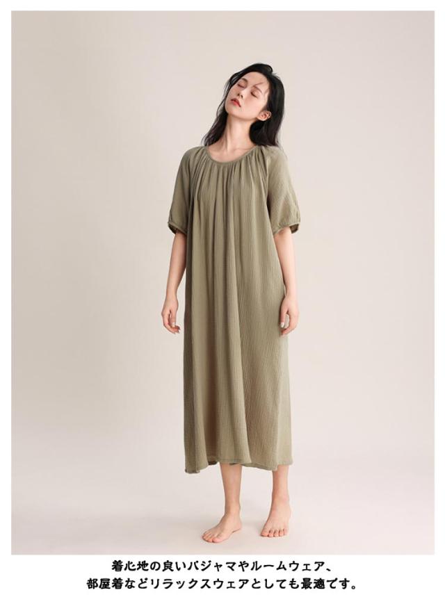 ワンピース タオルワンピ レディース ダブルガーゼ 綿 半袖 ガーゼ コットン 湯上がりガーゼワンピース ゆったり 湯上がりワンピース パジャマ ルームワンピース ポケットあり ルームウェア リラックス ウェア ロング丈 吸水