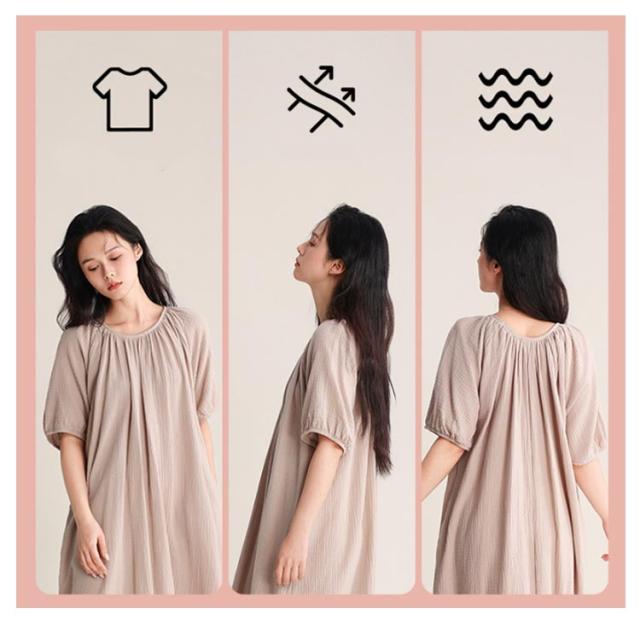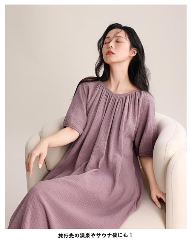 | 湯上りに着たいそのまま寝られるガーゼワンピース。 柔らかなダブルガーゼを使用! 着心地の良いパジャマやルームウェア、部屋着などリラックスウェアとしても最適です。 旅行先の温泉やサウナ後にも! | |