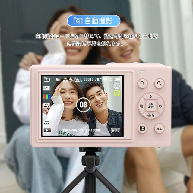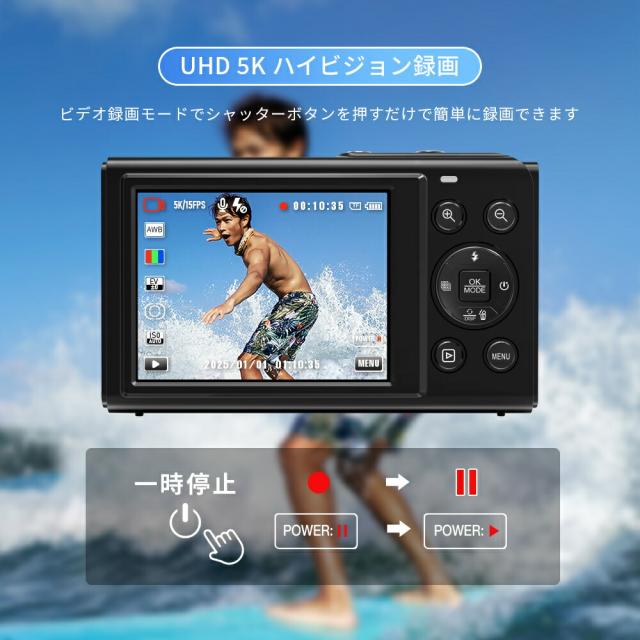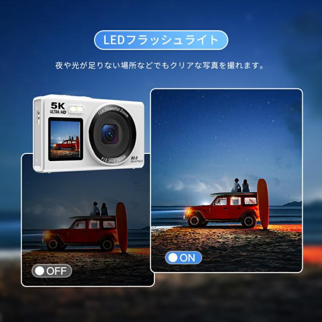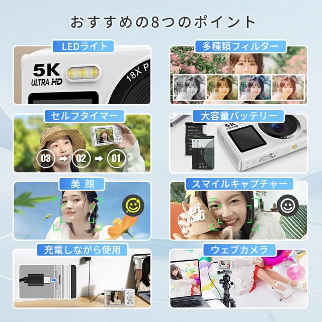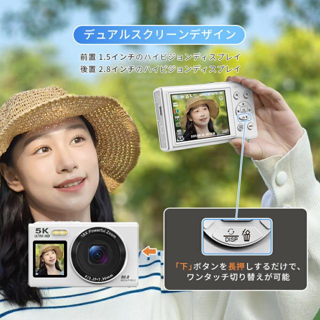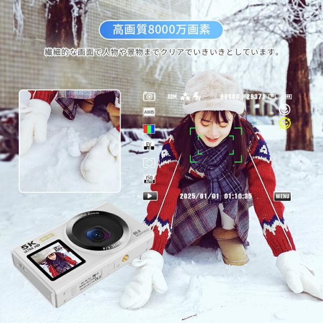 デジカメ・WIFI対応・デジタルカメラ・スマホ転送・カメラ・コンデジ・5K・日本製チップ・8000万画素・デュアルレンズ・スマホに送れる・64GBマイクロSDカード付き・18倍ズーム・オートフォーカス機能・ウェブカメラ・父の日・プレゼント