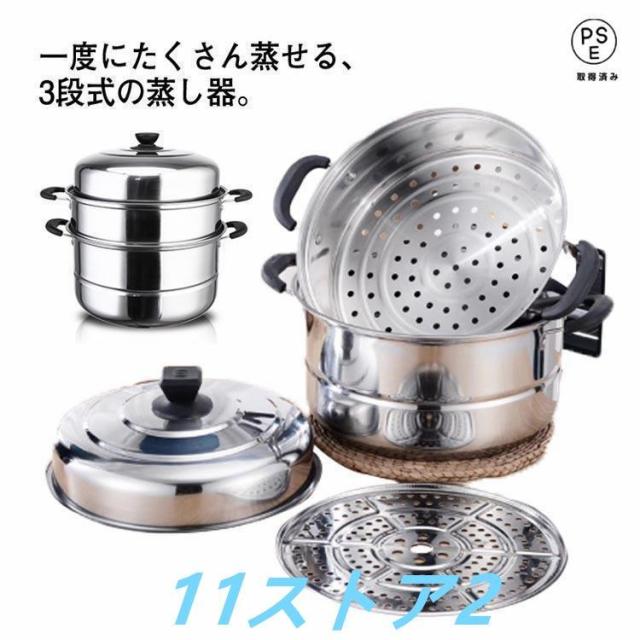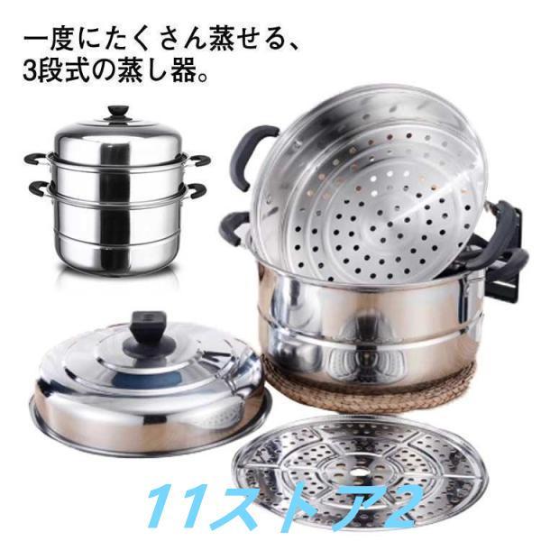蒸し器 三段 30cm 大容量 ステンレス せいろ 蒸籠 IH対応 ガス火対応 蒸し鍋 スチーム調理器 両手鍋 蓋付き ステンレス鍋 調理鍋 蒸し料理