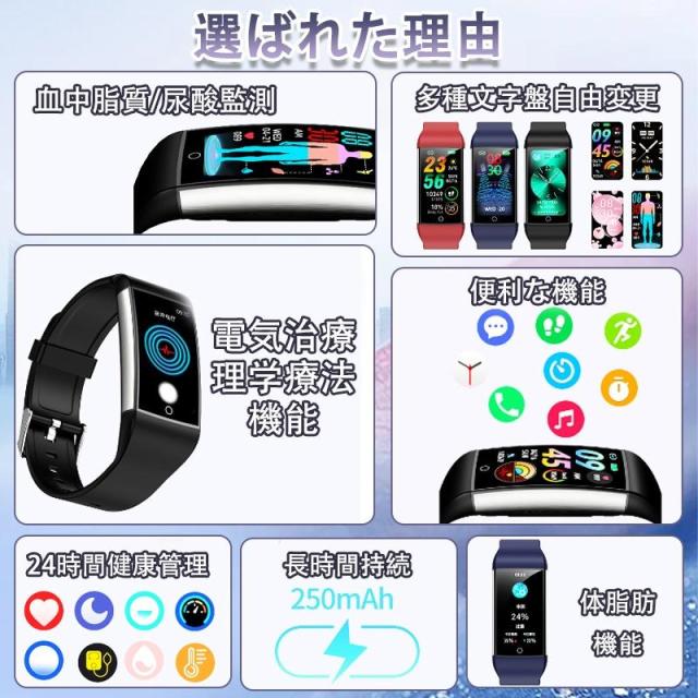 「パルス理学療法」スマートウォッチ 日本製センサー 心電図ECG+PPG 血糖値 血圧測定 尿酸 血中脂質 体温測定 血中酸素 24時間高精度心拍数 睡眠管理 着信通知