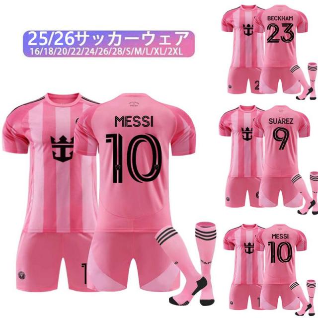 25/26マイアミ ホーム 大人用、子供用サッカーユニフォーム トレーニングウェア10番メッシサッカーウェア9スアレスユニフォーム大人子供男女スーツ